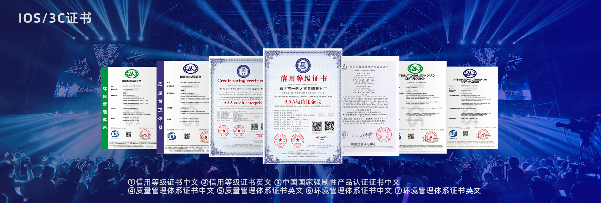 一帆音響已獲得質(zhì)量管理體系證書,環(huán)管理體系證書,AAA信用證書,各種產(chǎn)品檢測報(bào)告等不同的證書。可提供投標(biāo)資質(zhì)的資料參與投標(biāo),助力拿下大工程